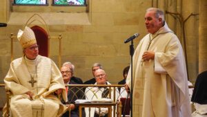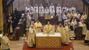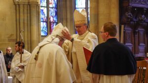 In einer festlichen Zeremonie ist der neu gewählte Abt der Benediktinerabtei St. Mauritius in Tholey, Pater Wendelinus Naumann OSB, am Christkönigssonntag offiziell eingeführt worden. Bischof Dr. Stephan Ackermann aus Trier erteilte dem 53-Jährigen die Benediktion und überreichte ihm die Insignien seines Amtes – den Ring als Zeichen der Treue, die Mitra sowie den Hirtenstab als Symbol seines pastoralen Dienstes. Mit den Worten „Ich bin bereit“ beantwortete Abt Wendelinus die fünf Fragen, die der Bischof ihm zu Leitung, Dienst und Verantwortung gegenüber dem Konvent stellte.