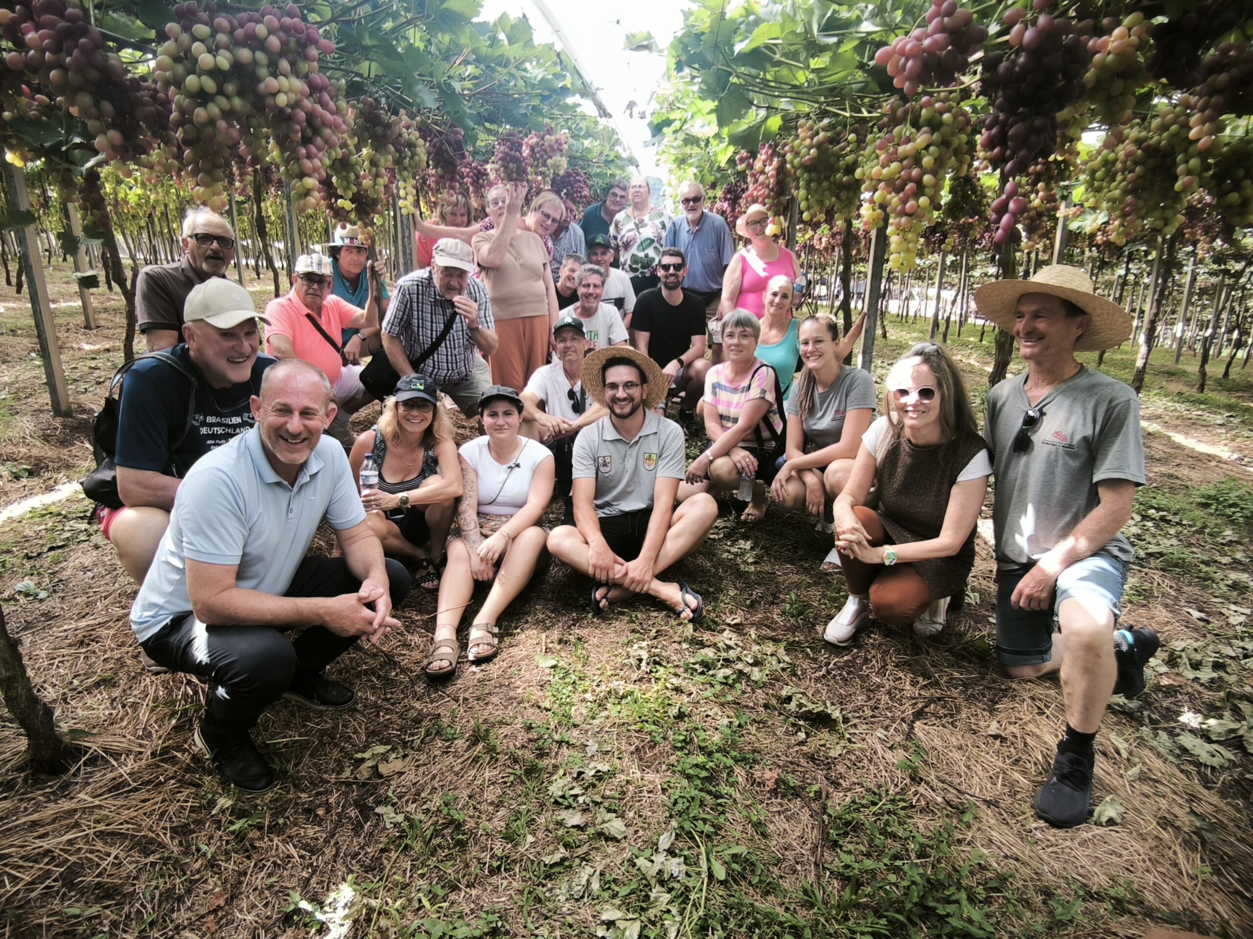 Neben Kultur und Geschichte beeindruckte auch die Natur des südbrasilianischen Bundesstaates Rio Grande do Sul. Am Wasserfall im Naturparadies „Sítio Paraíso na Terra“ erlebten die Gäste die landschaftliche Schönheit der Region. Ein Besuch im Weingut „Don Guerino“, bei dem die Sonne hinter den Hügeln versank, sorgte für eine besondere Atmosphäre und viele intensive Gespräche.