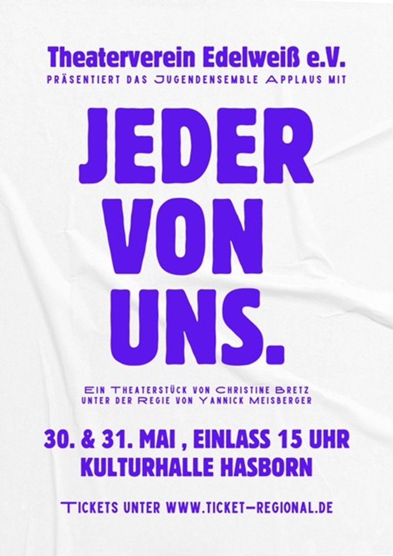 „Jeder von uns“ – Theateraufführung des Jugendensemble „Applaus“ des Theaterverein „Edelweiß“ Hasborn
