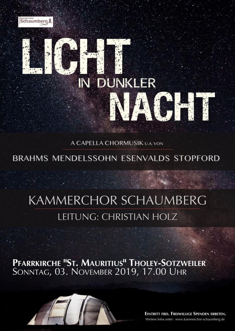 „Licht in dunkler Nacht“: Konzert mit dem Kammerchor Schaumberg